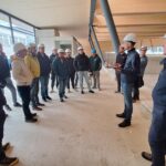 Architekt Maio Gasser, D.I. Thomas Badergruber von den Tragwerkspartnern und der Bauleiter der Tigewosi Ing. Thomas Öfner erläuterten uns gemeinsam mit den Vertretern der Fa. Huter und Fa. Bodner die besonderen Herausforderungen auf der Baustelle.