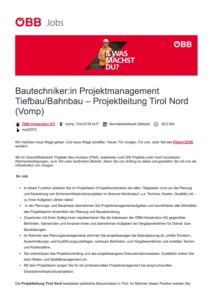 Bautechniker_in Projektmanagement Tiefbau_Bahnbau – Projektleitung Tirol Nord (Vomp)